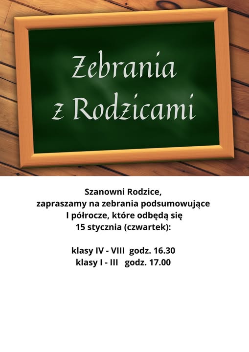 Szanowni rodzice, Zapraszamy na zebrania podsumowujące pierwsze półrocze, które odbędą się w czwartek...