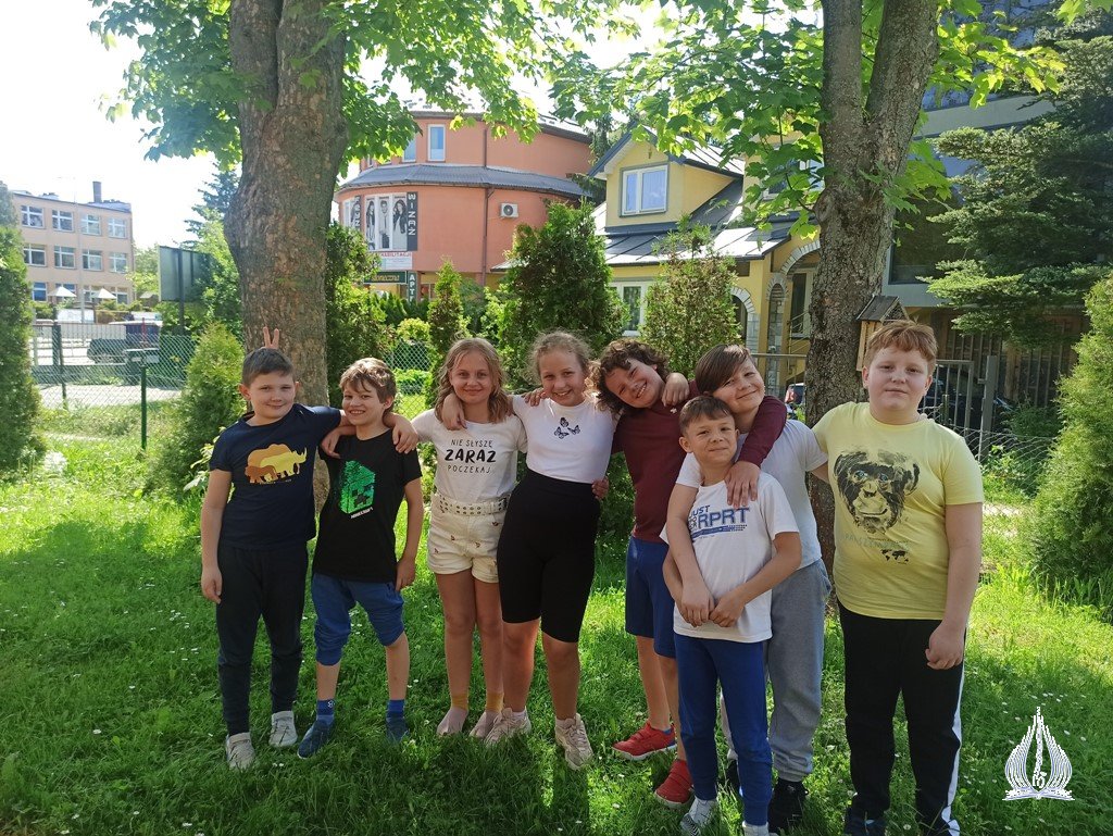 W piękny, słoneczny, majowy dzień klasy 4a i 4b KSP lekcję języka polskiego spędziły w plenerze. Tematem zajęć była analiza obrazu pt. "Metaforyczna podróż". Szkolne ławki i mury zastąpiła zielona trawa, koce i muzyka relaksacyjna. Uczniowie wpatrując się w niebo i w pejzaż tworzyli ciekawe epitety i porównania, które były nieodłączną częścią opisu chmur.