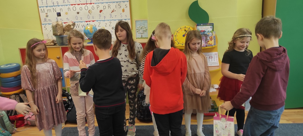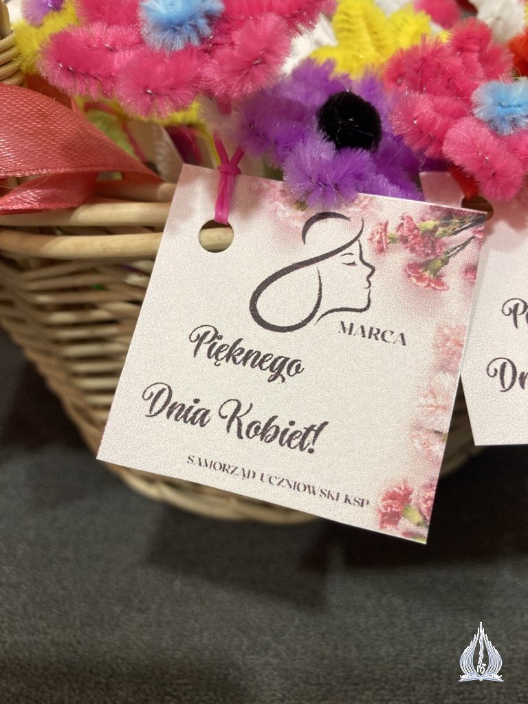 Od samego rana nasi mili chłopcy przygotowali piękne niespodzianki dla dziewcząt. Samorząd szkolny własnoręcznie wykonał kolorowe kwiaty, które teraz wręczają każdej kobiecie, życząc jej pięknego dnia.