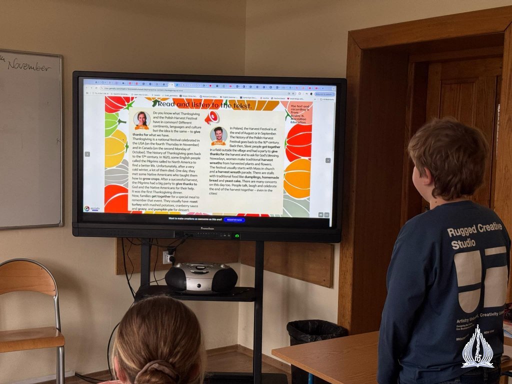 Lekcja zakończyła się dyskusją na temat tego, co uczniowie nauczyli się o Święcie Dziękczynienia. Porównywaliśmy je również do naszego polskiego święta Dożynek.