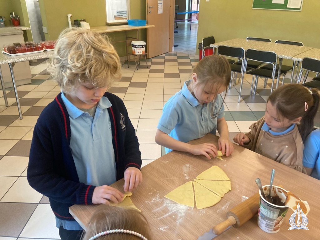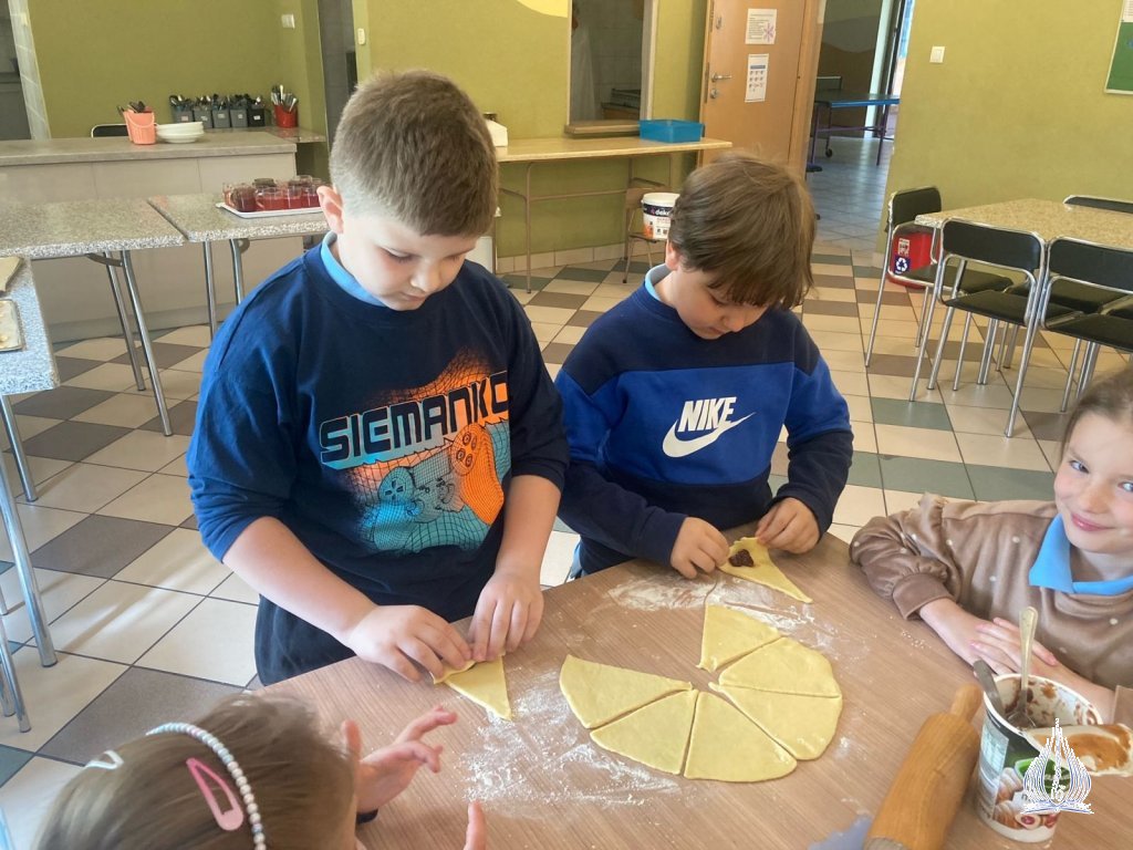 Uczniowie klasy pierwszej KSP, realizując temat „Rosnąć jak na drożdżach” przeprowadzili doświadczenie, sprawdzając, czego drożdże potrzebują do wzrostu. Na zakończenie upiekli rogaliki drożdżowe, ćwicząc przy tym motorykę małą i rozwijając umiejętności kulinarne.