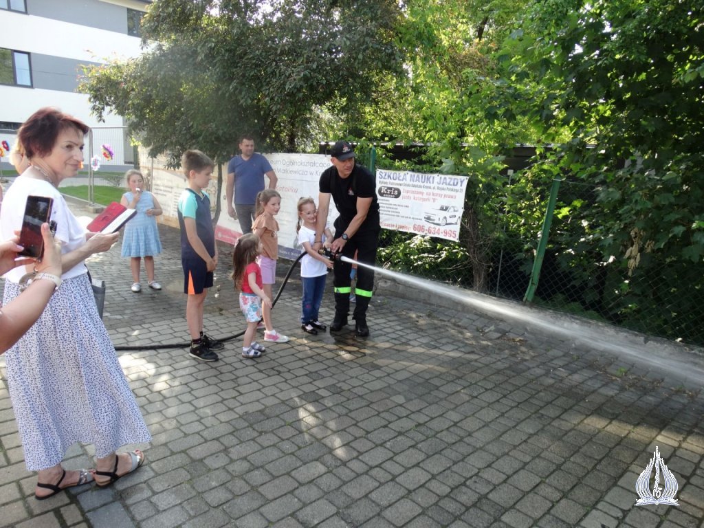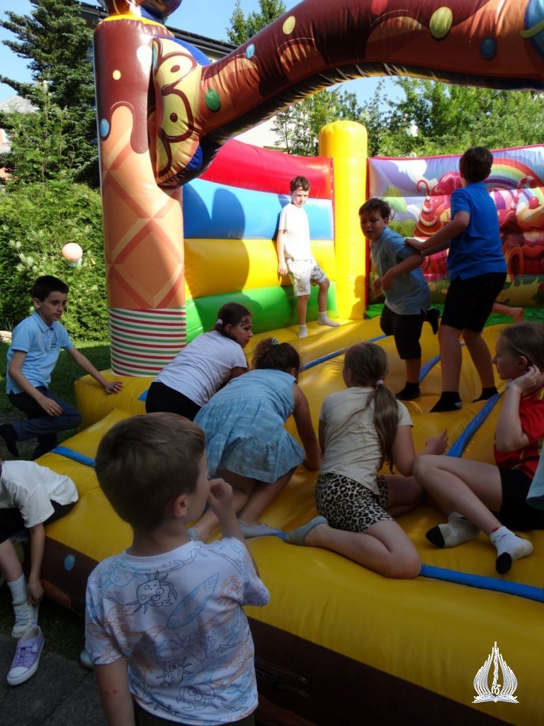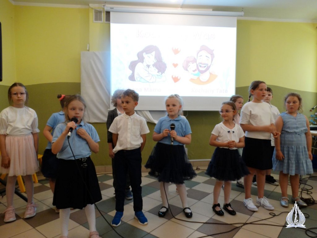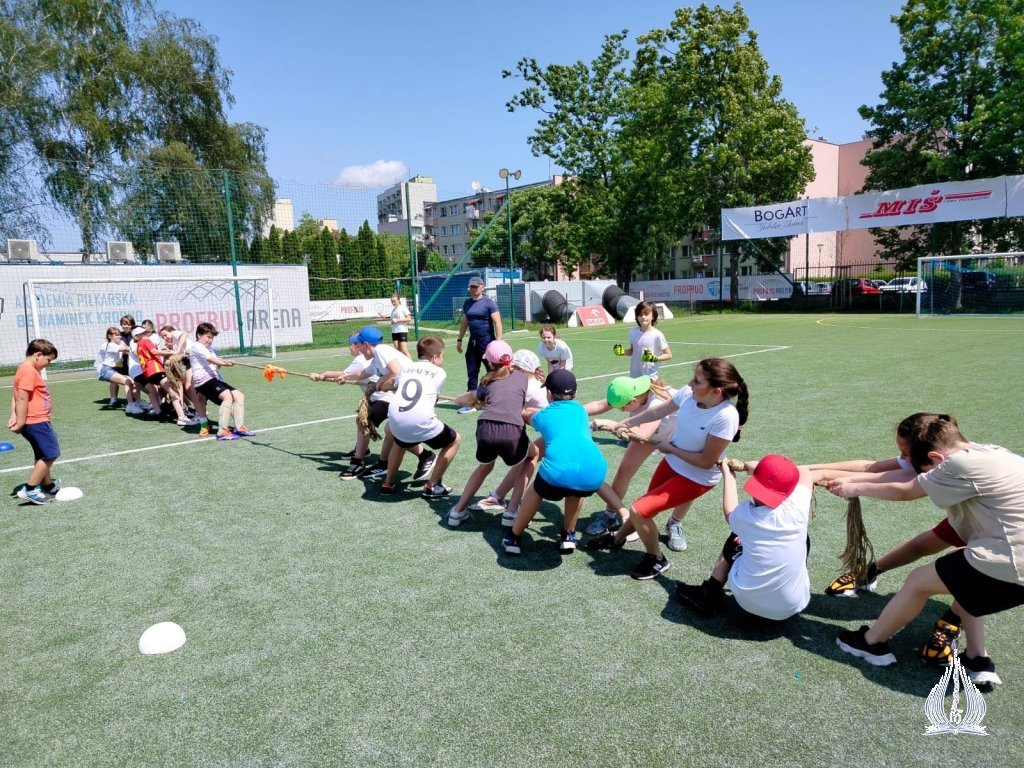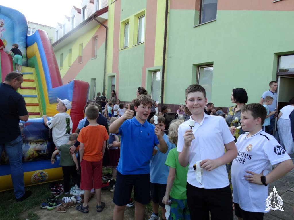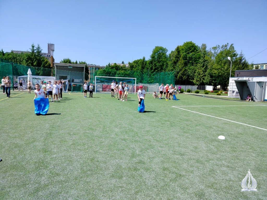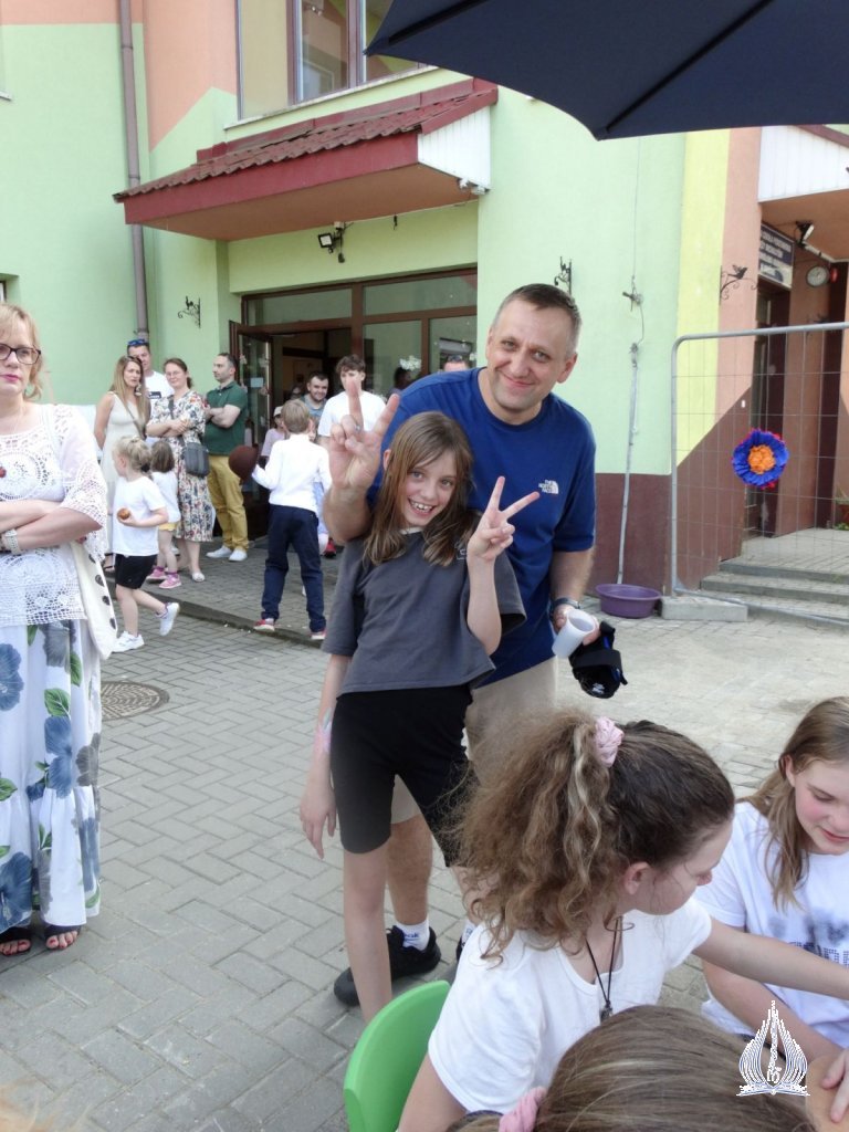 Następnie klasy I-V KSP wraz z wychowawcami udały się na intensywne rozgrywki sportowe, m.in. przeciąganie liny, tory przeszkód oraz piłkę nożną. Po powrocie do szkoły uczestniczyli w przedstawieniu "Room on the broom" w wykonaniu uczniów z klasy III i VI KSP pod okiem Pani Beaty Muni. Kolejnym punktem dnia był udział w corocznej edycji Mam Talent. Uczniowie pokazali swoje umiejętności w kategoriach: śpiew, taniec, "inne talenty" oraz praca plastyczna. Następne godziny były czasem wspólnego, rodzinnego świętowania. Dzieci wystąpiły w programie artystycznym dedykowanym dla swoich Rodziców. Słowem i śpiewem dziękowały im za trud wychowania, troskę i miłość. Obdarowali ich także starannie przygotowanymi prezentami. Wspaniałą zabawą rozpoczęliśmy Piknik Rodzinny. Można było skorzystać z dmuchanej zjeżdżalni, pomalować sobie twarz, puszczać bańki mydlane oraz obejrzeć stanowisko dziewcząt, które należą do Klubu Młodego Odkrywcy i dowiedzieć się nieco więcej o ich działalności. Podczas zabawy odwiedzili nas strażacy, którzy zaprezentowali wóz strażacki, jak również policjanci z motorami. Nasi wspaniali Rodzice przygotowali dla wszystkich poczęstunek. Nie zabrakło słodkości, owoców i pieczonej kiełbaski. Ten dzień pozostanie na długo w naszej pamięci.