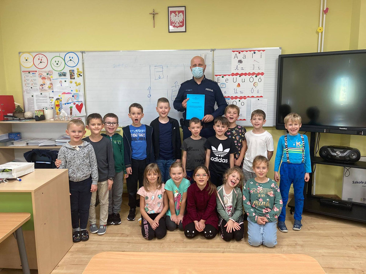 Dnia 21.10.2021r. klasę I KSP odwiedził Pan Policjant, który przeprowadził krótką lekcję na temat bezpieczeństwa w szkole, na drodze i w sieci...