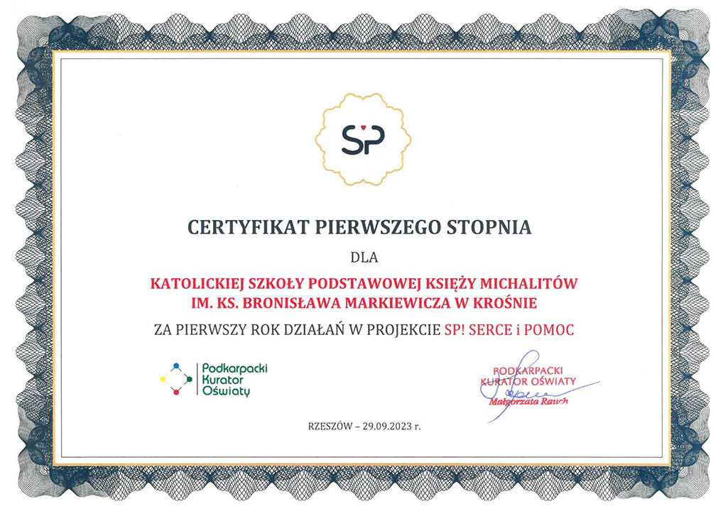 29 września Katolicka Szkoła Podstawowa w Krośnie otrzymała z rąk ...
