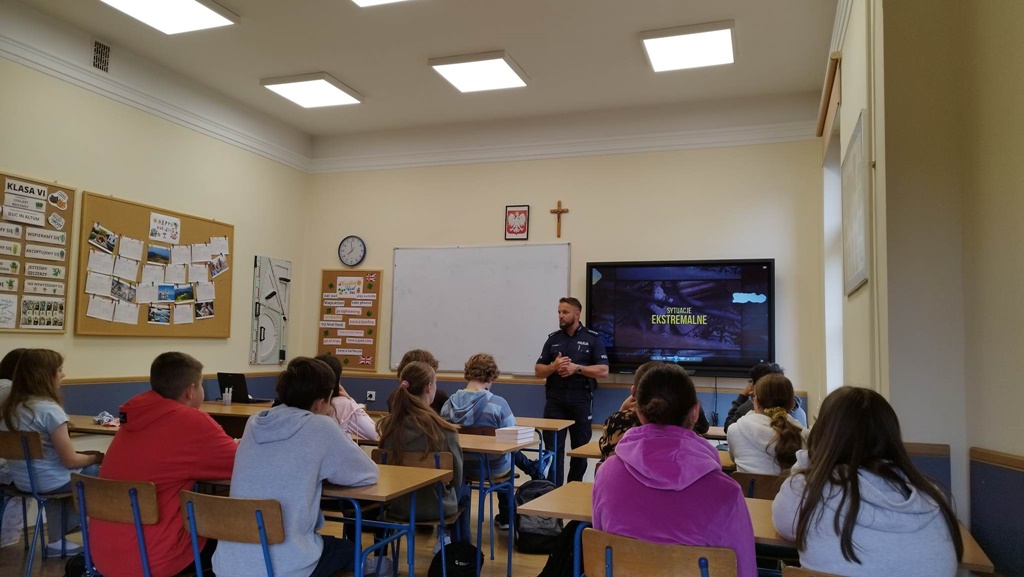 Dzisiaj klasa VI uczestniczyła w zajęciach prowadzonych przez komisarza...